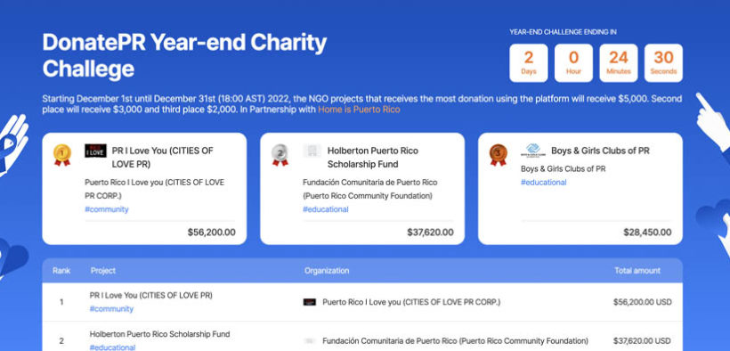 DonatePR.com, Home is Puerto Rico raise ’22 Year-end Charity Challenge awards