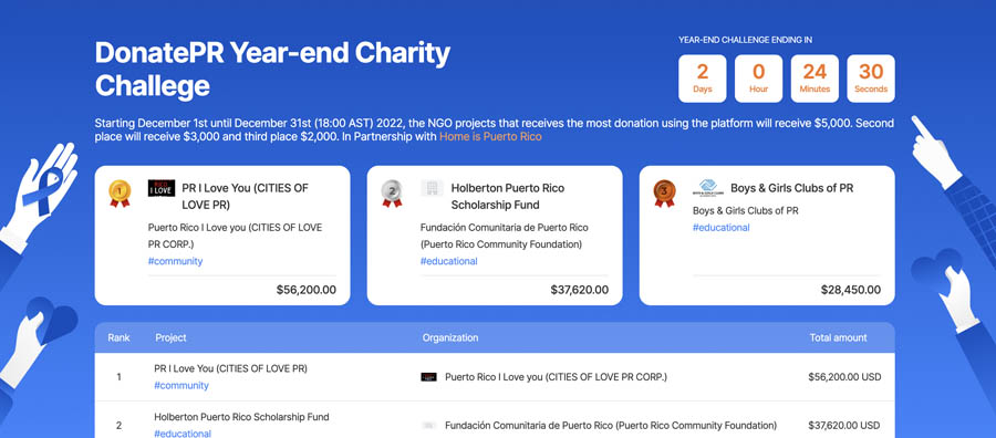 DonatePR.com, Home is Puerto Rico raise ’22 Year-end Charity Challenge awards